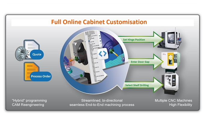 Supplied Cut & Edged Or Assembled.Why set up expensive and hard to program CNC Machinery when you can remotely operate our factory as yours with full cabinet customisation including:- Gaps ,Overhangs, Overlays, Hinge Positions- Shelf hole patterns with custom start & finish- Edit construction methods and much more...Priority order lead times available (as little as 48 hours).